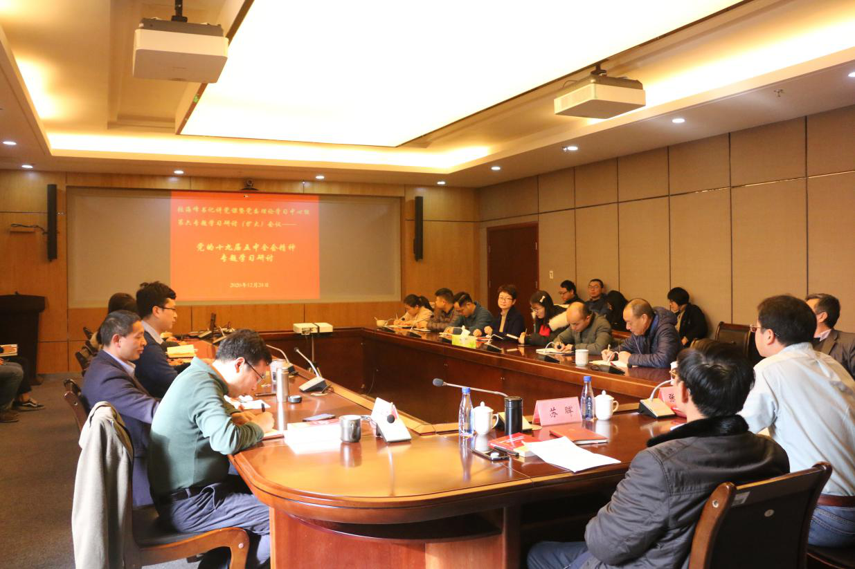12月24日,按照自然资源部党组关于开展强化政治机关意识教育的工作部署,以及中心党委理论学习中心组年度学习计划,海岛中心党委书记张海峰同志讲授了专题党课,并主持召开理论学习中心组第六专题“党的十九届五中全会精神”学习研讨(扩大)会。中心党委理论学习中心组成员张海峰、苏晖、李瑞山、丰爱平、林河山出席会议。张海峰同志主持会议并讲授党课,中心组成员作专题学习重点发言,全体党员、发展对象和入党积极分子参加学习和研讨。