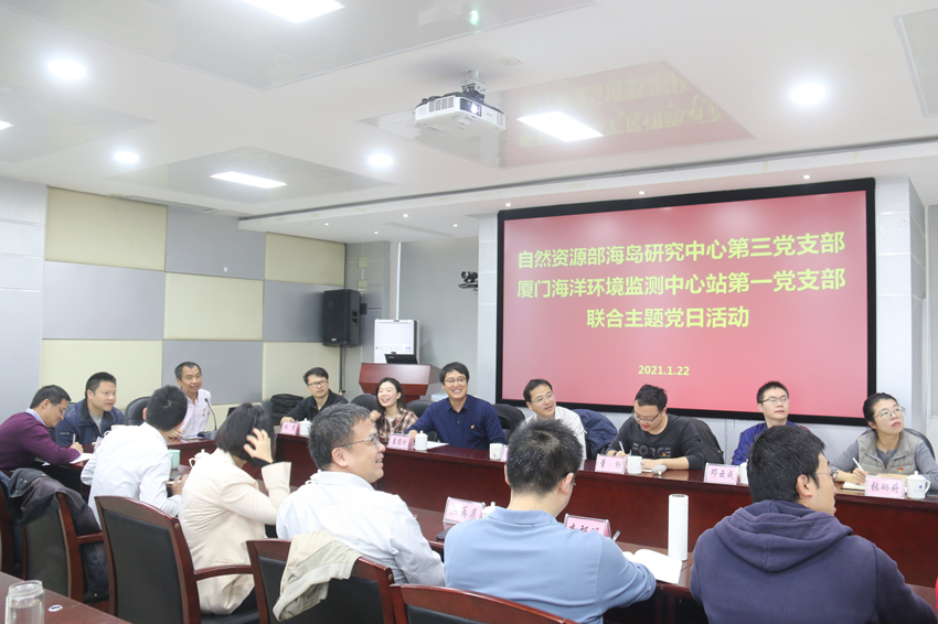 1月21日-22日,自然资源部海岛研究中心第三党支部(以下简称“海岛中心第三党支部”)与厦门海洋环境监测中心站第一党支部(以下简称“厦门中心站第一党支部”)在厦门开展“党建引领促发展、共谋共建十四五”联合主题党日活动,活动分为现场调研学习、座谈交流和考察百年老站厦门海洋站三个环节。海岛中心党委书记、主任张海峰、厦门中心站党委书记吴向荣和站长洪再展以普通党员身份参加活动。