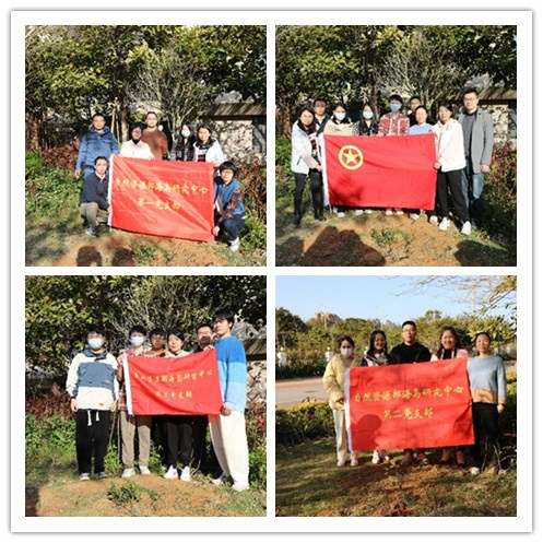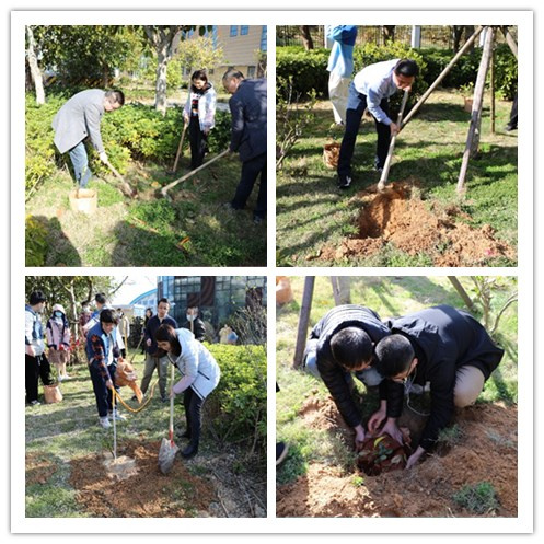 在中心园区,中心党员干部以支部为单位,开展植树活动。大家分工协作,相互配合,有的挖坑,有的填土,有的搬运苗木、有的提水灌溉……随着一株株树苗的栽下,中心又增添一片新绿。