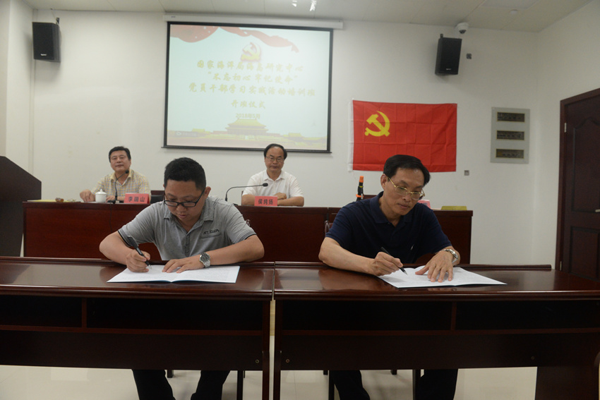 为进一步推进全面从严治党,落实党风廉政建设中的主体责任,层层传导和压实责任,开班仪式还专程举行了2018年海岛中心“一岗双责”和党风廉政建设责任书签订仪式。中心党委书记与两名党委委员签订了《海岛中心“一岗双责”目标责任书》,三名党委委员分别与联系部门和党支部签订了《海岛中心2018年度党风廉政责任书》。