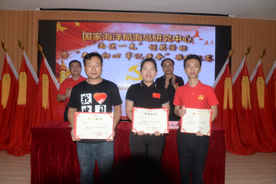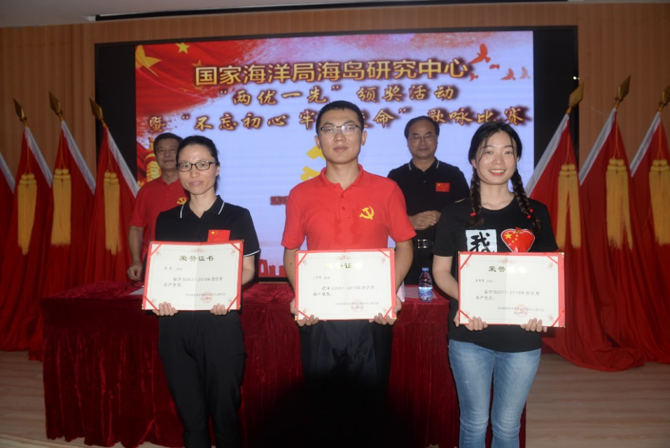首先,李瑞山副主任宣读了2017-2018年度海岛中心“两优一先”表彰决定,对获得先进党支部的第三党支部,获得优秀党务工作者称号的潘歌、徐金燕、张振伟三位同志以及获得优秀共产党员称号的王睿馨、李霞、林雪萍三位同志进行了表彰,希望他们珍惜荣誉,谦虚谨慎,再接再厉,在新的起点上再创新的业绩。