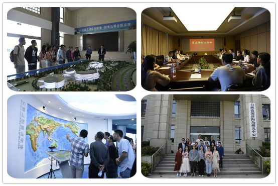参会人员参观学习海岛中心海岛科普展馆,海岛中心第二党支部、第三党支部与法学院教工第二党支部、学生党支部就海岛保护开发相关议题进行交流讨论,以期为我国海岛保护利用相关法律政策与管理的完善做出更多贡献。