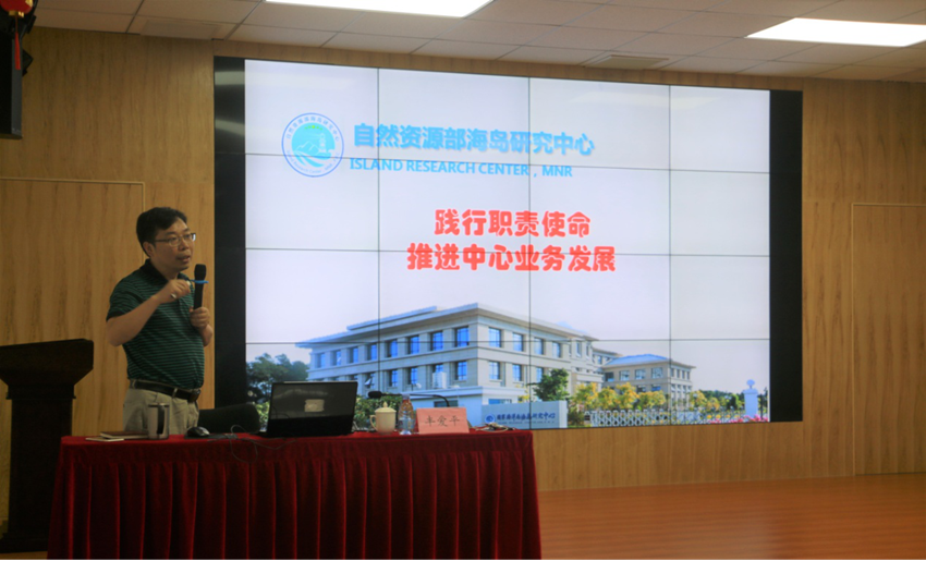 丰副主任分享了“不忘初心、牢记使命”应做到“三心”和“三个牢记”,由此拓展分析了当前海洋强国战略和海洋命运共同体理念下海岛人以至海岛中心人的职责使命。结合文献资料,梳理了国内外海洋海岛相关研究热点,并通过类比国内外业务支撑机构,分析了海岛中心作为业务支撑单位的核心职能。针对中心实际情况,提出了中心应在七个方面发展的建议,进一步细化了海岛中心“M-N-R”三步走发展策略,提出“强基础”、“出建议”、“发产品”、“提能力”、“搭平台”等十条发展策略,要求中心党员干部深刻领会“不忘初心、牢记使命”主题教育的重要意义,带头实行两不要、三自觉,以更加昂扬的精神状态履行职责使命,推进中心业务不断发展。