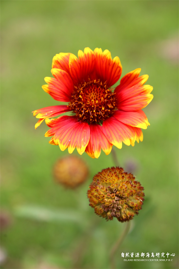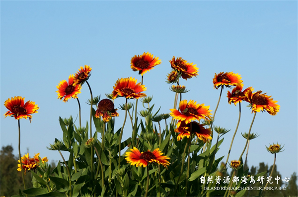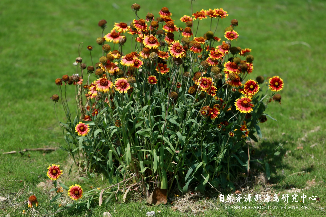 天人菊是典型的海岛海岸带沙生植物,在海边沙滩上、石砾堆中可看到其踪迹,“寻常花儿见风跑,此花更爱迎风笑”说的就是她,她生性强韧,皮实耐热,喜欢阳光沙滩,花开火热,花败亦萌,有时随着温度的升高,长势还更加良好,虽然耐阴性和耐寒性稍稍逊色些,但防止水土流失、抗风防潮、耐干旱、耐贫瘠、耐盐碱可都是她的强项,是海堤生态化、海滩后滨沙地植被绿化、生态修复的先锋植物之一。