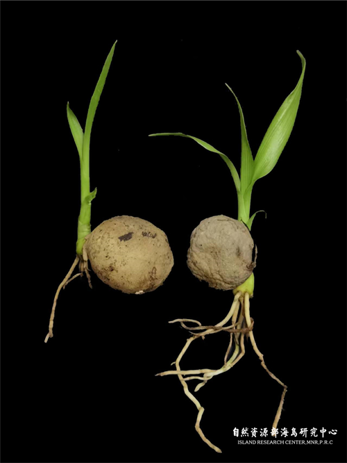 萌发出幼叶和根系的文殊兰种子