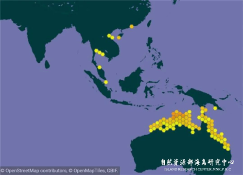 海岛藤在国内主要分布于广东、广西、海南和香港,国外主要分布于越南、印度尼西亚和澳大利亚,目前GBIF(Global Biodiversity Information Facility,全球生物多样性信息机构)关于海岛藤的分布范围尚未将广西的信息收录。