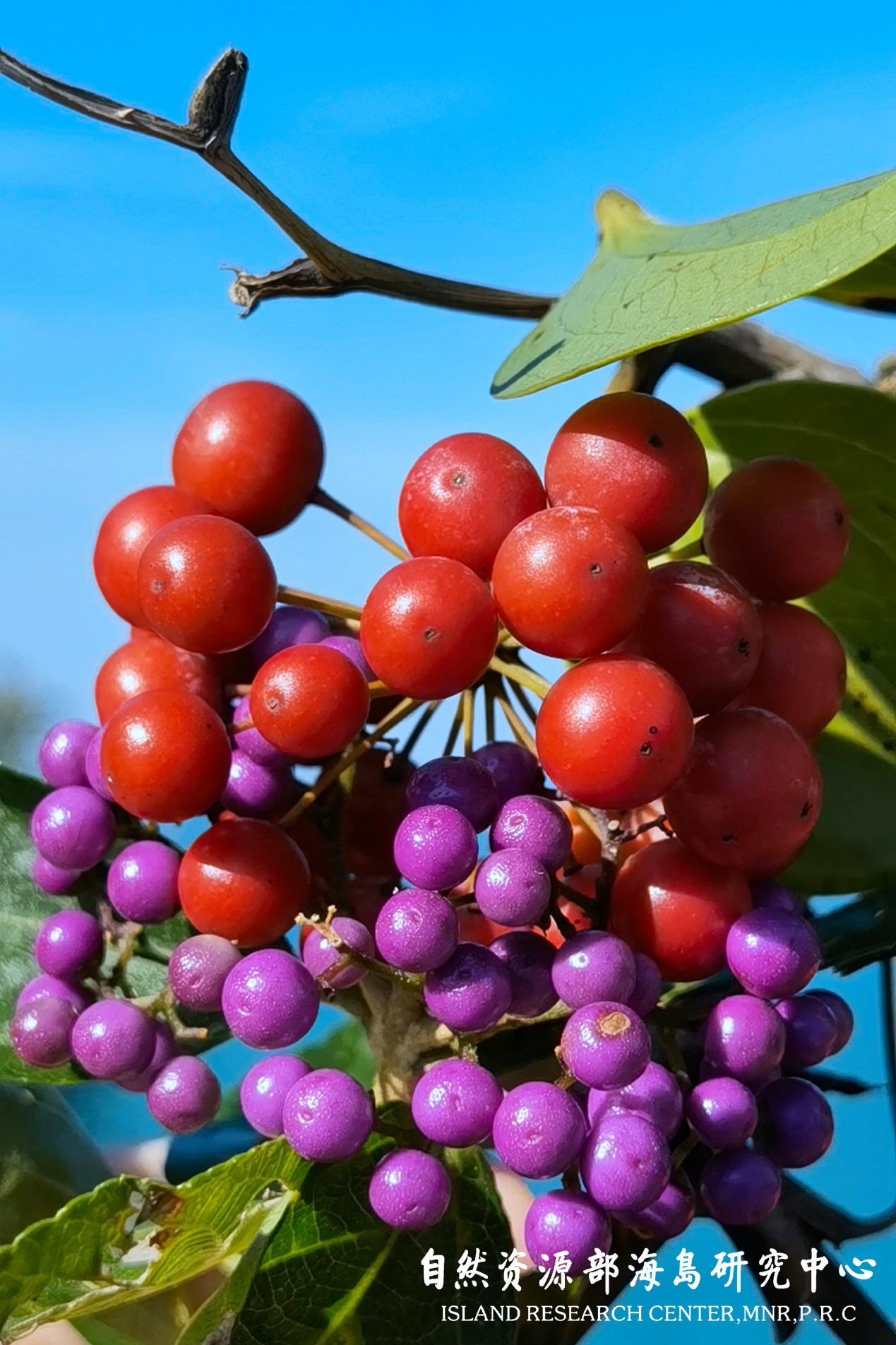 菝葜的红果果(上)与上狮紫珠的紫果果(下)(福建平潭猫头墘)