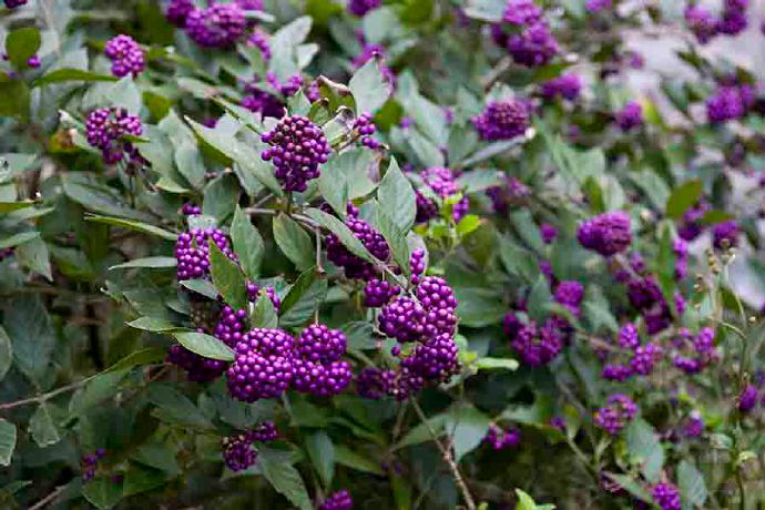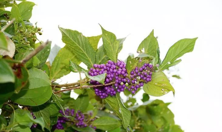 该属植物形态圆润,泛着宝石般的光泽,如颗颗紫珍珠,故名“紫珠”。在自然界中,红颜色的果实居多,紫色的果实本就稀少,这一明显的特征也使得紫珠属的植物具有极高的辨识度,英文干脆把它叫做“beauty berry”(美丽的果实),可想当初命名人初见紫珠,一定是被迷的神魂颠倒,才会冠以如此大名。至于它的中文名,让人不免联想上古神兽落入凡间,身上的配饰化为一棵棵美丽的紫珠,那该是怎样美妙的神话故事啊。