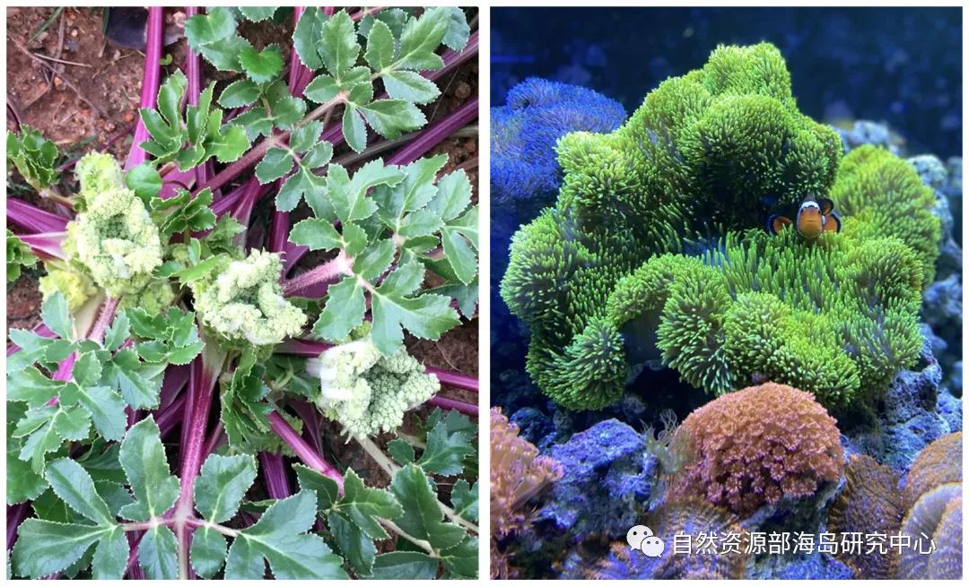 没开花的花序(左图)和草皮珊瑚(右图,曾千慧摄)