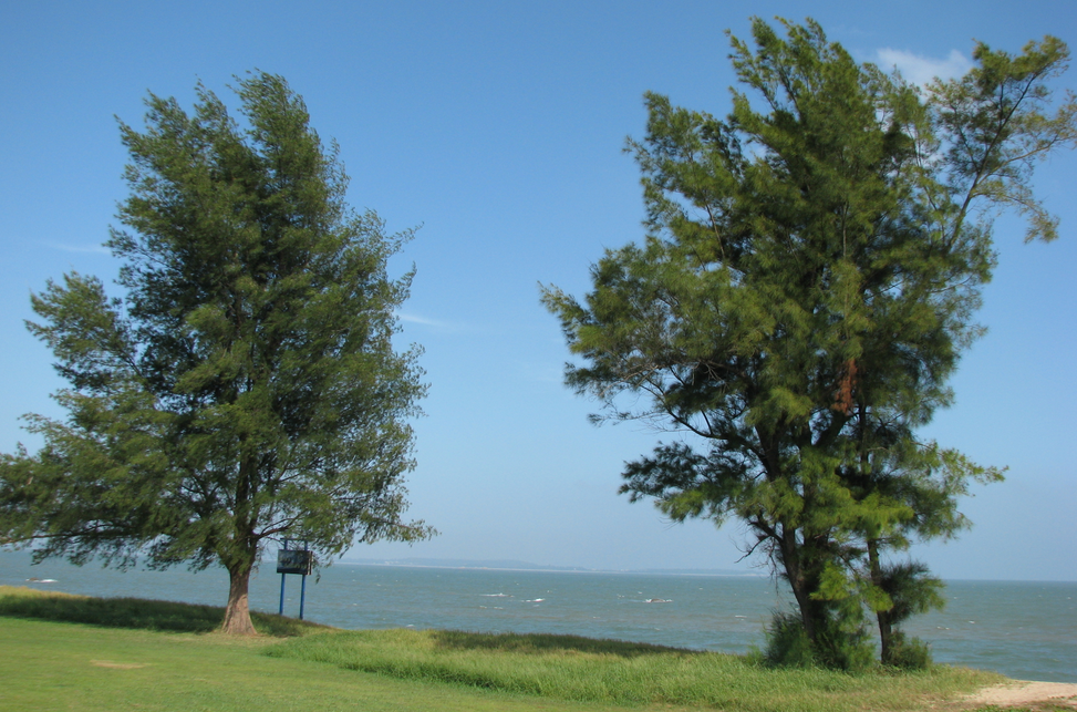 然而,影响力这么大的木麻黄却并非乡土树种,她原产于澳大利亚和太平洋岛屿,与柽柳一样,是人们对木麻黄科树木的统称。我国引种木麻黄有 100 多年的历史,1897 年台湾省首先引进木麻黄,1954年,广东省雷州半岛 、吴川和电白等地营造的木麻黄沿海防护林获得成功;其后,广东 、广西、福建和浙江等省区沿海各地亦先后营造木麻黄人工林。我国先后引进了2个属、23个木麻黄种、200多个种源和260多个家系,比较常见的是木麻黄(Casuarina equisetifolia)、粗枝木麻黄(C. glauca)、细枝木麻黄(C. cunninghamiana)和千头木麻黄(C. nana)4种。