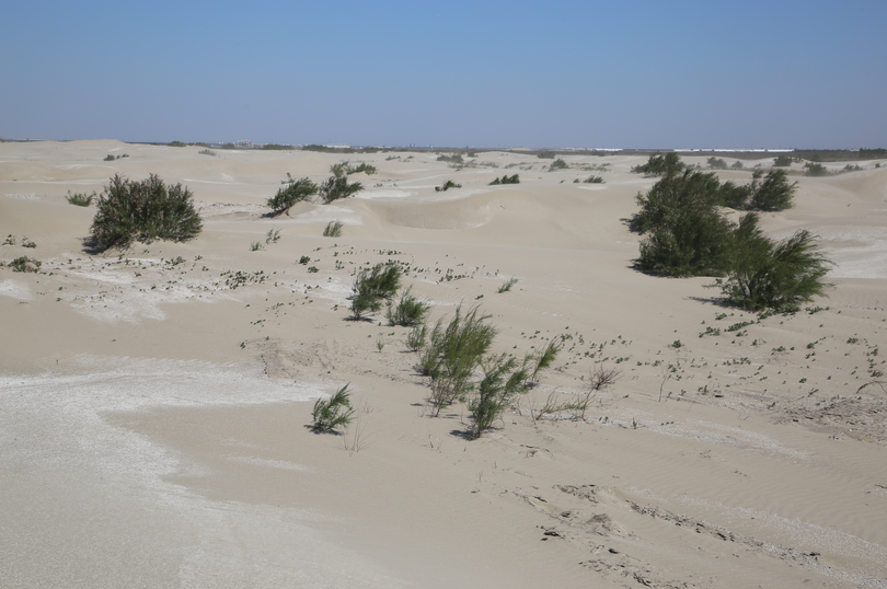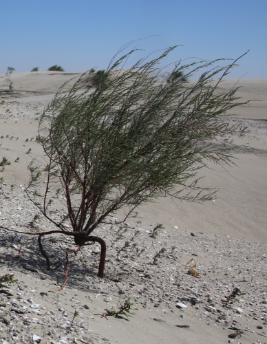 河北唐山菩提岛海岸沙滩上生长的柽柳