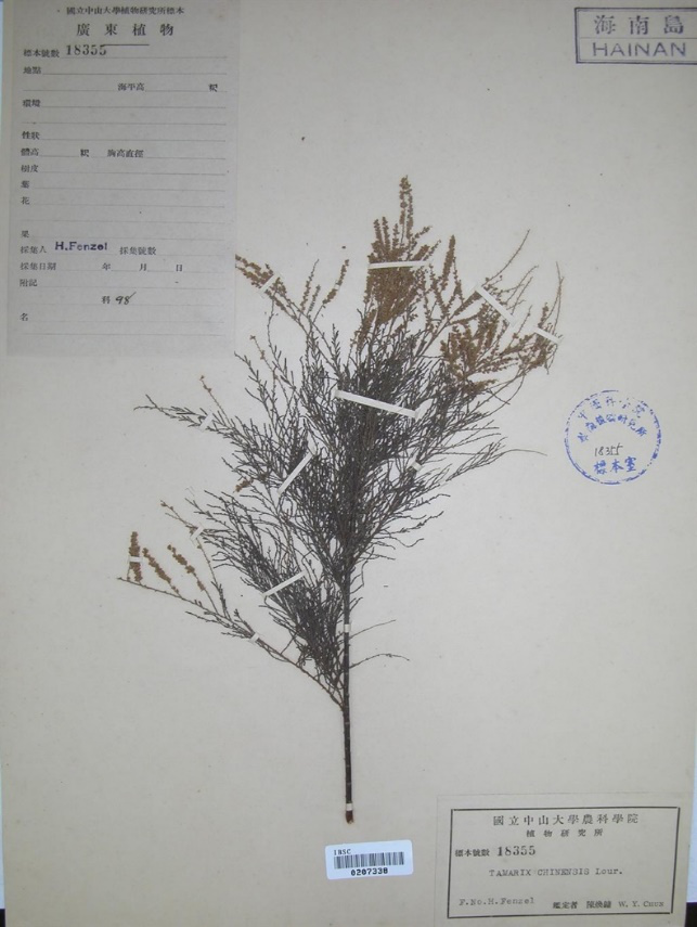 海南记录的柽柳标本-由陈焕镛院士鉴定,可惜未记录具体年份