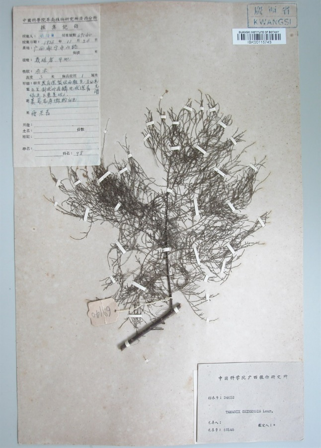 广西最早记录的柽柳标本(1936年)