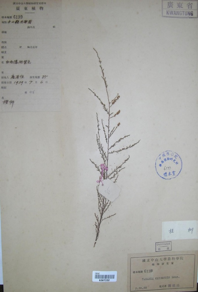 广东最早记录的柽柳标本(1929年)