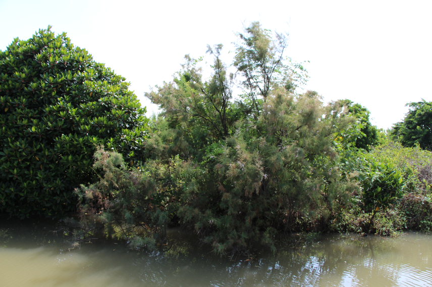 广州南沙湿地公园水岸边生长的柽柳