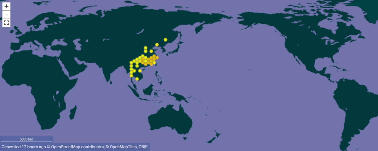 小果菝葜的全球分布范围
