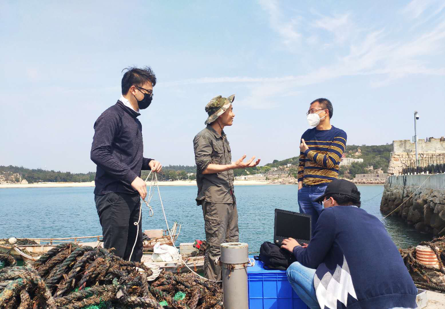 4月18日上午,中心陈淳和林震两位博士与海洋三所研究员顾海峰等一行6人,在平潭月亮湾、海坛湾、渔屿村、钟门村等附近海域开展了海水取样工作。据了解,此次通过采集平潭近岸出现“蓝眼泪”现象的海域水体样品和海洋环境状况数据,旨在与前期开展的台湾海峡西侧平潭近岸海域断面观测数据进行对比,探索平潭“蓝眼泪”起源与早期发生的生态学机理,为其可能出现的生态灾害风险和监测预警提供理论依据。