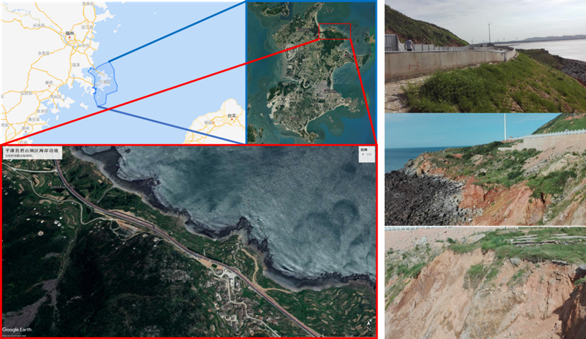 据了解,平潭海岸边坡常年受海水侵袭,在台风暴雨下极易诱发滑坡,是我国发生此类灾害的高风险区域。本项目主要对平潭海岸边坡开展为期一年的坡体崩塌监测预警研究,前期以环岛路院苑山周围边坡进行试点研究。该处边坡海拔10~12 m,自然坡角70~95°,面临长江澳,背靠环岛公路,坡体表层为褐、黄褐色粘土夹杂石块;中层由风化花岗岩及土层组成,底层由岩石组成。