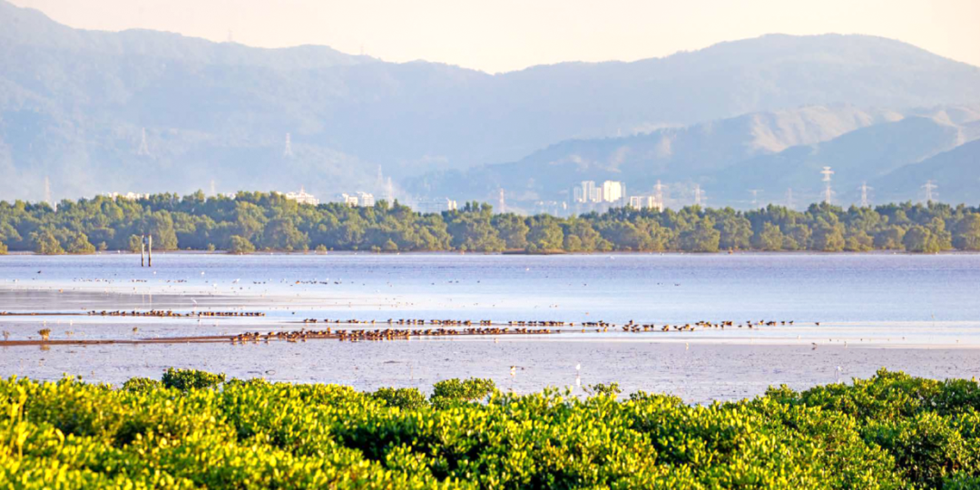 在七律《咏红树林海滨公园》一诗中,诗人描绘出日暮下漫步深圳福田红树林湿地十里长堤,看绿草茵茵,花朵娇艳美丽,使人心旷神怡。广东深圳福田红树林湿地作为全国唯一地处城市中心区的国家级自然保护区,与香港米埔自然保护区隔深圳河相望,共同构成了具有国际意义的深圳湾湿地生态系统。