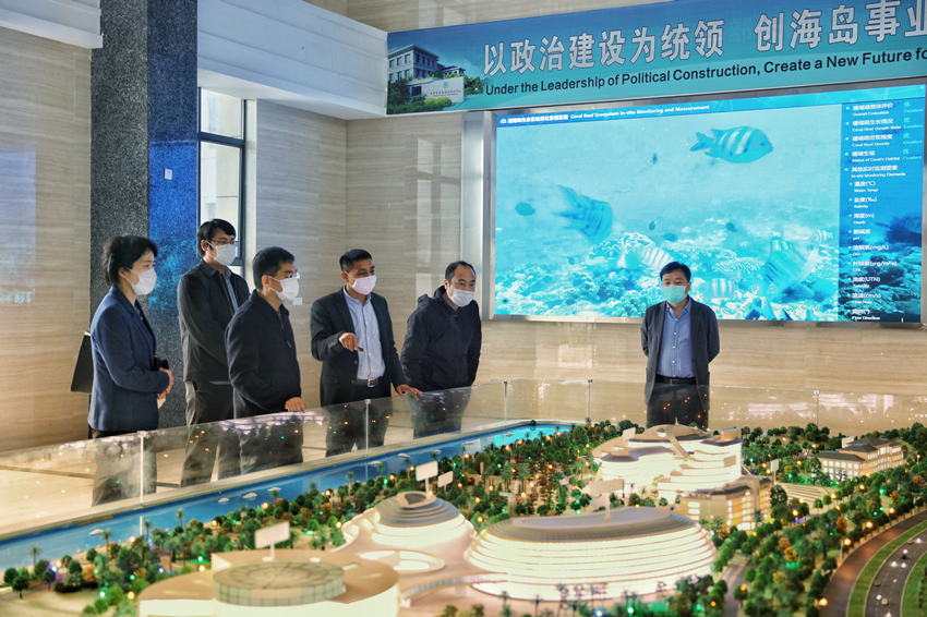 调研组参观了中心基建规划沙盘和海岛科普展厅,随后双方开展了座谈。会上,海岛保护处负责人汇报了中心职责与定位、科技业务发展以及国际交流合作等情况。