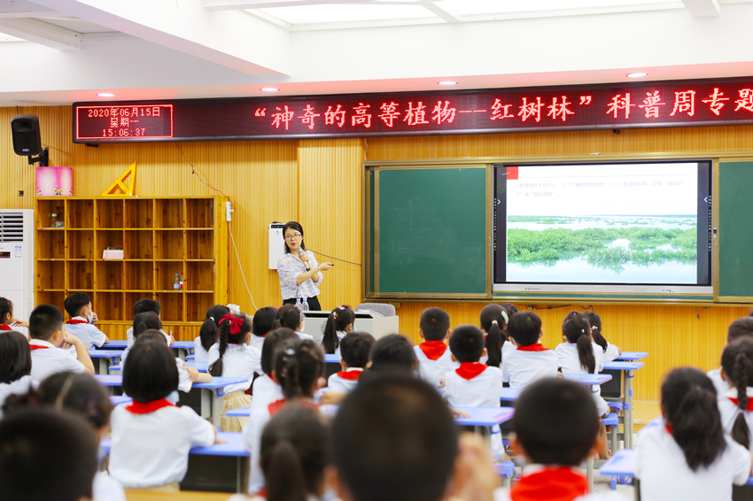 不仅如此,6月11日与15日下午,中心职工两度走进平潭当地校园,先后为500多名师生开展红树林与海洋内容相关的科普讲座。通过面对面交流,以红树林实物作为讲解道具,帮助学生拓展知识视野,大大增强了他们认识红树林、关爱海岛家园的积极性。