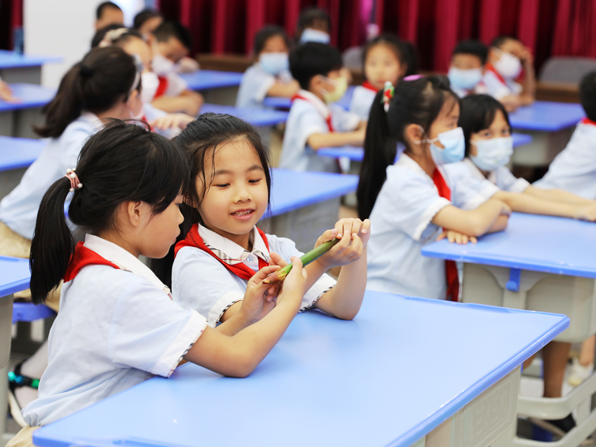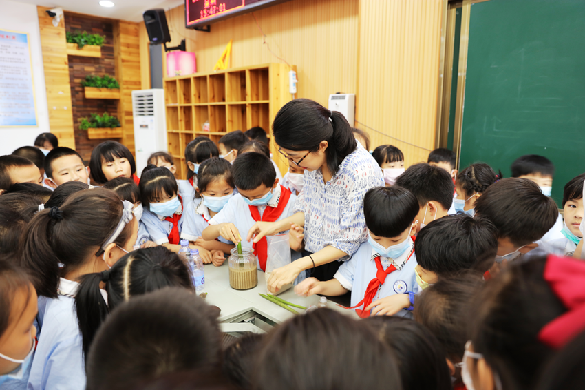 课堂氛围融洽,孩子们争相体验红树林的种植