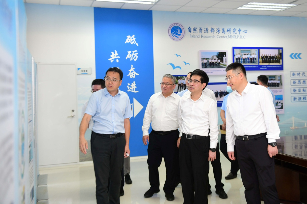 10月9日,福建省副省长林文斌一行赴海岛中心调研,省自然资源厅党组书记陈永共、省住建厅厅长朱子君、省交通运输厅厅长李兴湖参加。实验区党工委副书记、管委会主任黄建波,区资源生态局党组书记、局长阮伟忠,副局长刘顺桂等陪同调研。中心主任、党委书记张海峰,中心副主任丰爱平接待了调研组一行。