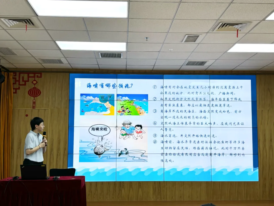 海洋灾害专题则通过生动的语言和丰富详实的案例向同学们介绍了常见的海洋灾害及其造成的灾难性后果,海啸和风暴潮带来的狂涛巨浪和巨大破坏让大家惊心动魄,赤潮这种“红色幽灵”让大家领略了美丽外表下所隐藏的危险,同学们认真聆听,积极回答问题,通过讲座对海洋灾害有了更深的认识,提高了海洋风险意识和海洋灾害应对能力。