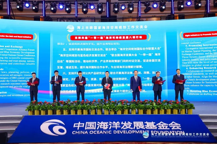 会议宣布海洋空间规划国际合作联盟建设启动,宣读了中国海洋发展基金会《助力共建“一带一路”海洋可持续发展合作倡议》《助力共建“一带一路”海洋可持续发展的八项行动》。