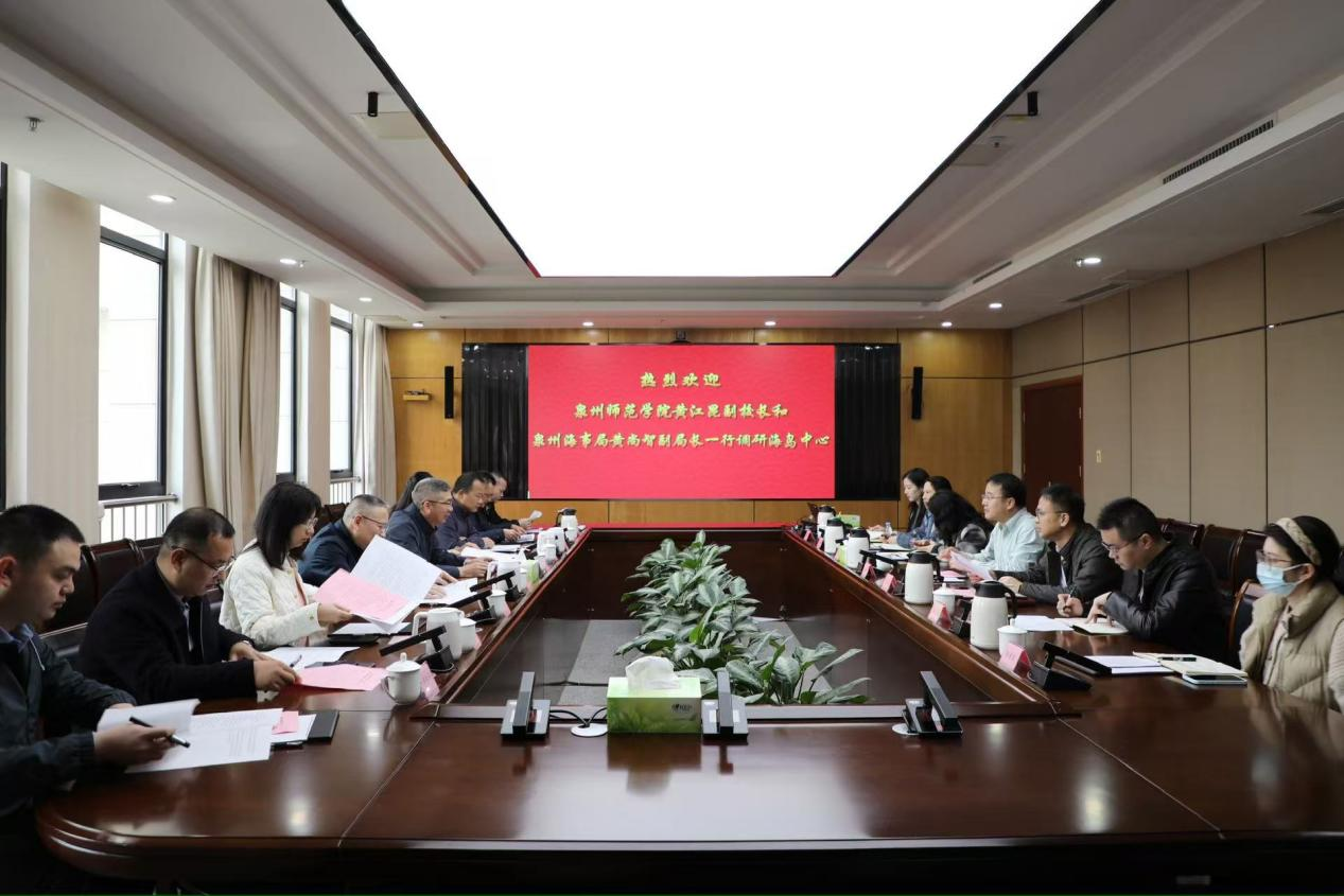 3月4日,泉州师范学院副校长黄江昆、泉州海事局副局长黄尚智一行前往海岛中心进行调研,中心领导班子接待了调研组一行。