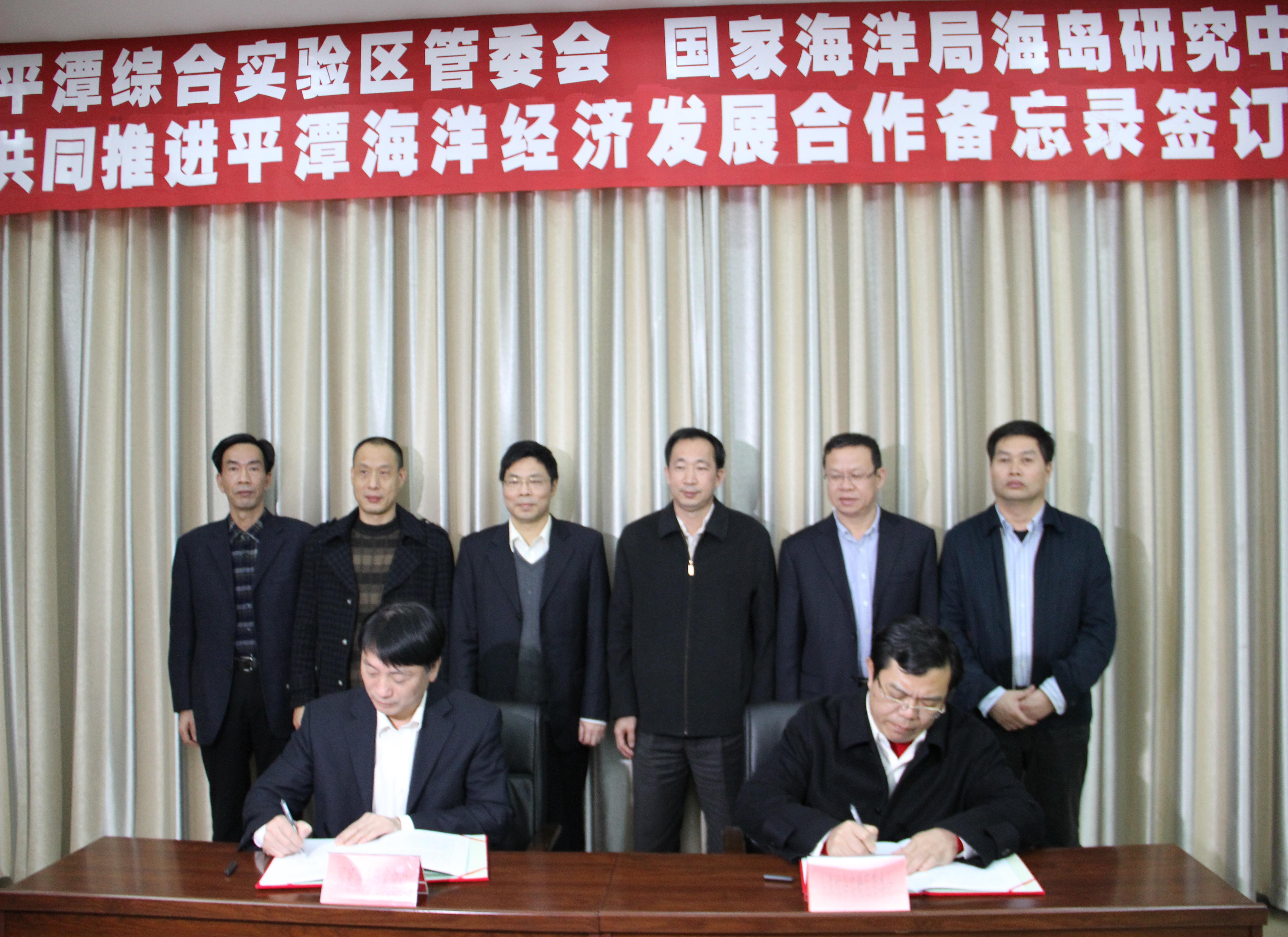 为建立长期、稳定的战略合作关系,发挥各自优势,共同促进平潭的经济发展,2014年12月31日下午,国家海洋局海岛研究中心与平潭综合实验区管委会签订了《共同推进平潭海洋经济发展合作备忘录》。海岛中心主任蔡锋与平潭管委会主任李德金等领导共同见证签字仪式,并由海岛中心副主任高文和管委会副主任王进足分别代表双方在合作备忘录签字。