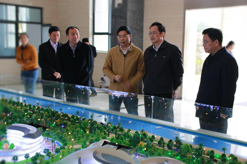 图2 调研组一行观看海岛中心基建规划沙盘模型
