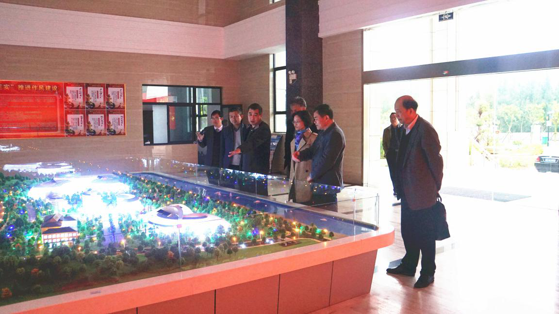 图1 调研组一行观看海岛中心基建规划沙盘模型