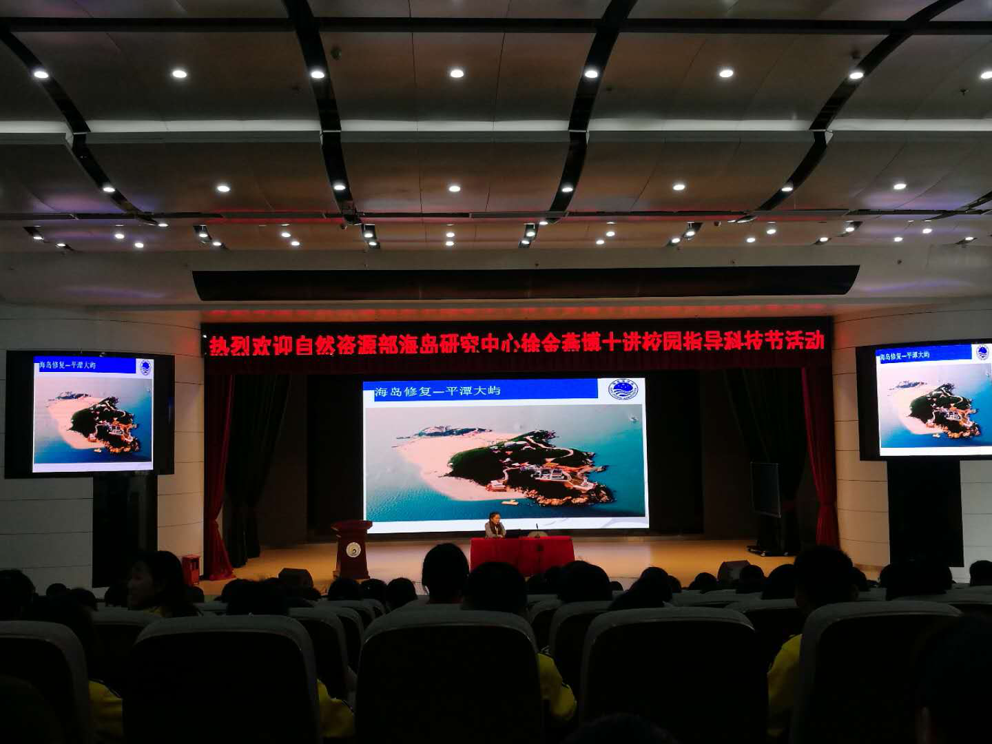 图1:师生代表观看“珍惜海洋 保护海洋生物多样性宣传片”