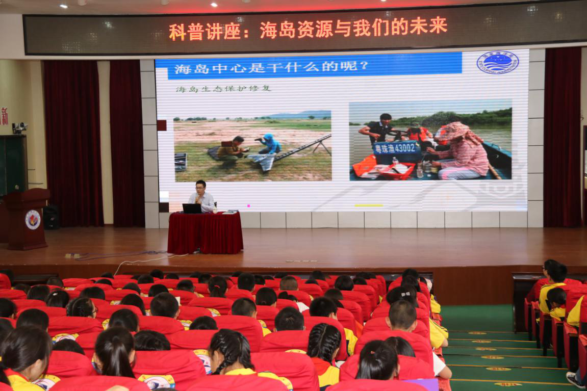 中心科研人员为师生代表们耐心讲解海岛基本知识、介绍中心开展的海岛保护工作,播放海岛知识宣传片、保护海洋生物多样性宣传片等,引导他们认识神奇美丽海岛,树立关爱海岛保护的意识。